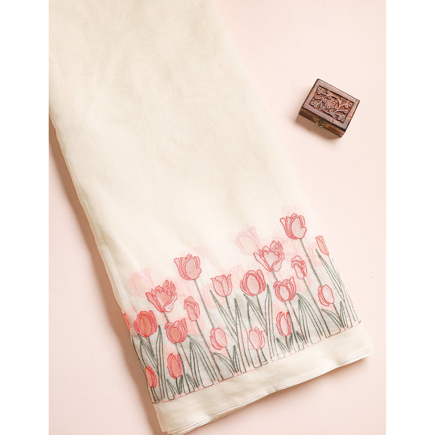 MUL CHANDERI EMBROIDERED FABRIC