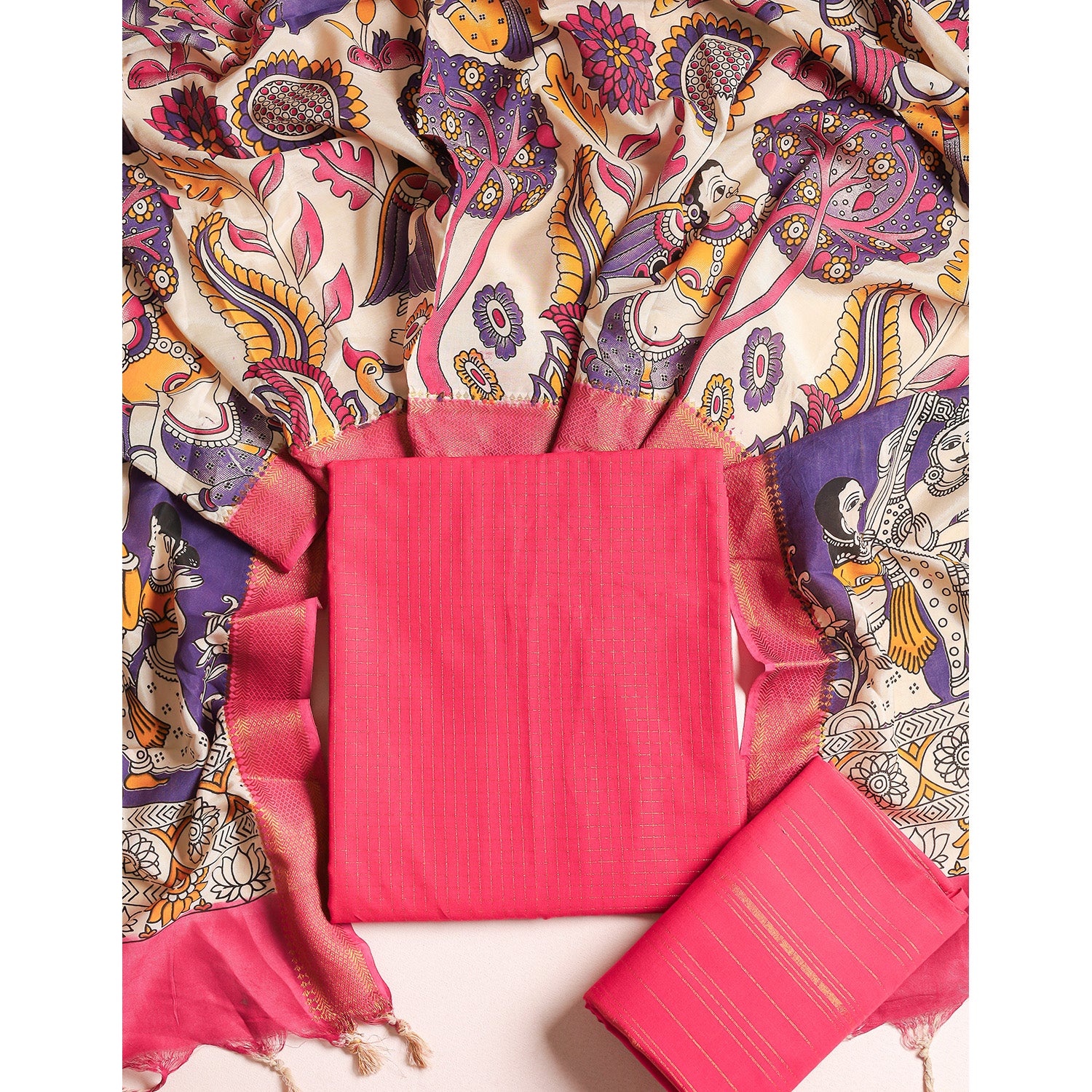 Embrace the allure of Cotton Suit Sets. Emanate your grace and elegance in our newly launched Cotton Handloom Lurex Top paired with matching Kalamkari Dupatta and Cotton Handloom Lurex Bottom . Enhance your ethereal charm and style it in your way !