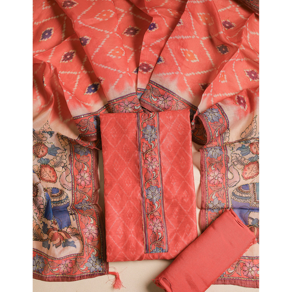 CHANDERI KALAMKARI KANTHA WORK SUIT SET