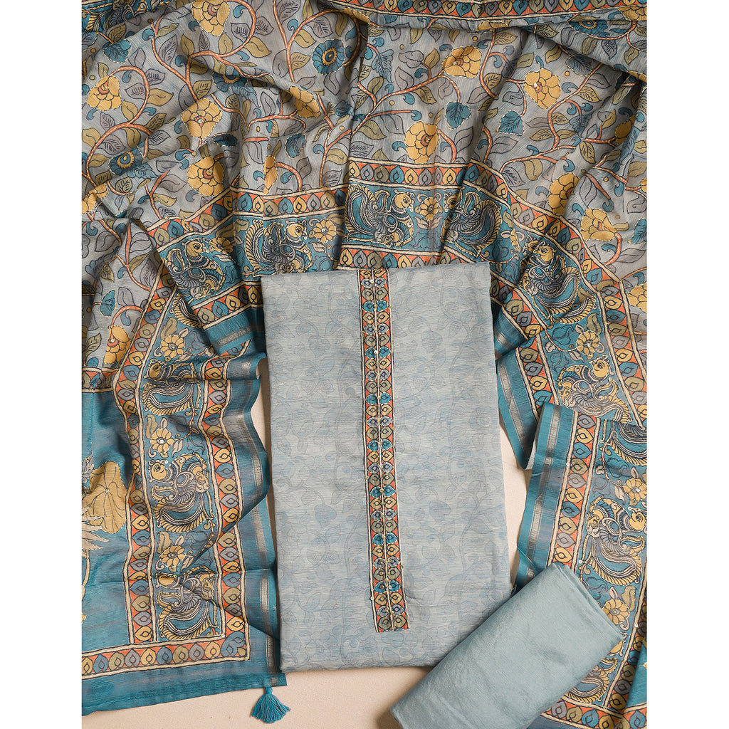 CHANDERI KALAMKARI KANTHA WORK SUIT SET