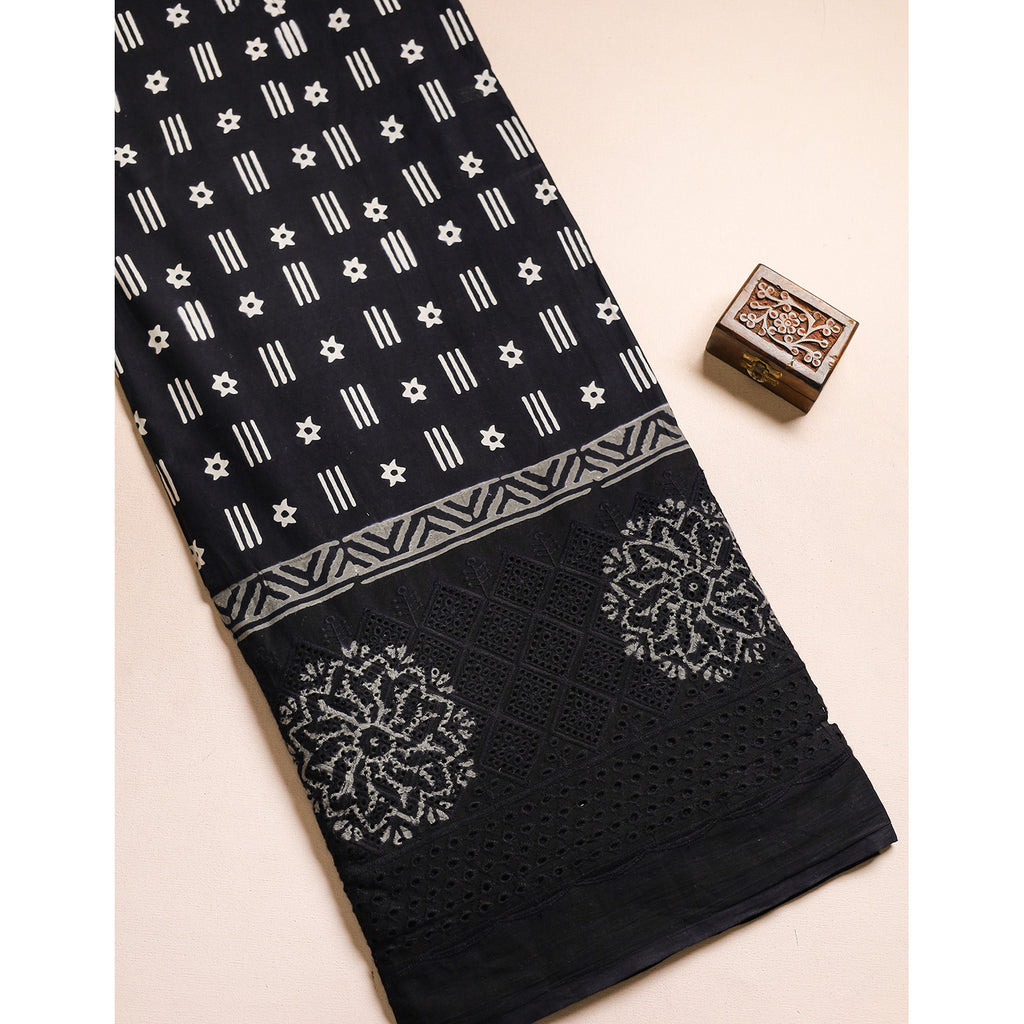 COTTON HANDBLOCK PRINTED SCHIFFLI BORDER FABRIC