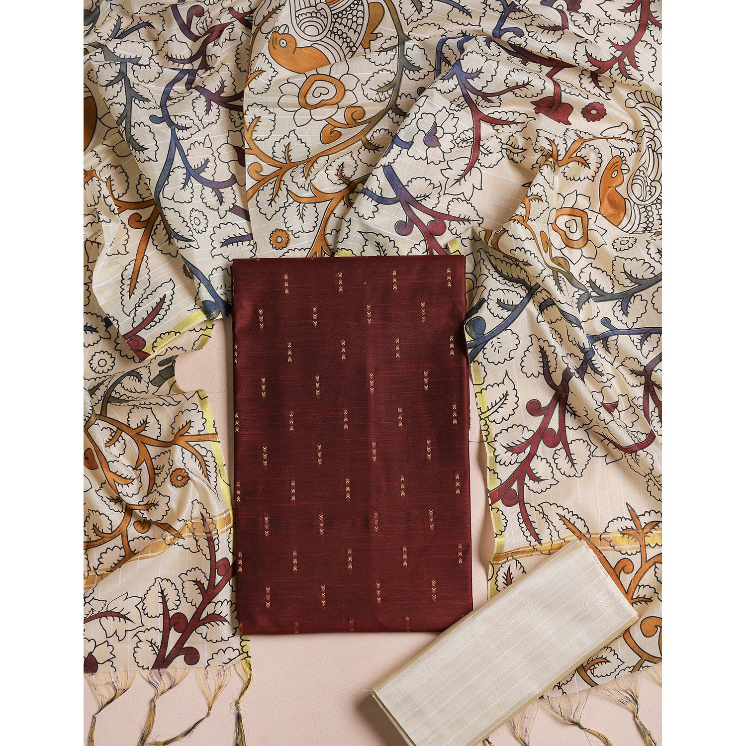 Embrace the allure of Dupion Suit Sets. Emanate your grace and elegance in our newly launched Dupion silk Top and bottom paired with Kalamkari printed Dupatta. Enhance your ethereal charm and style it in your way !