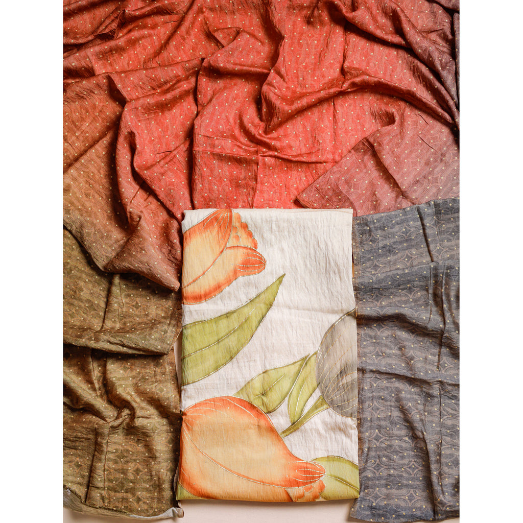 GULZAR'E'MOGRA - BRUSH PAINTED MOGRA CHANDERI SUIT SET