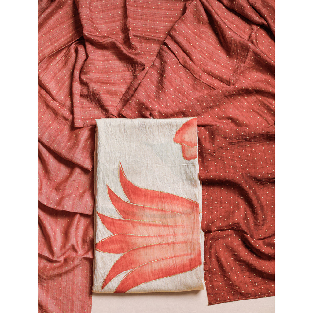 GULZAR'E'MOGRA - BRUSH PAINTED MOGRA CHANDERI SUIT SET