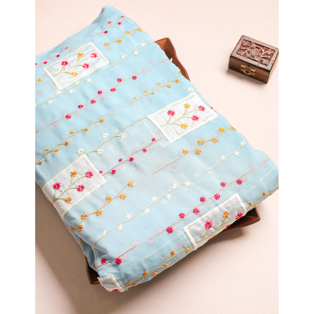 MALAI CHANDERI PATCHWORK EMBROIDERED FABRIC