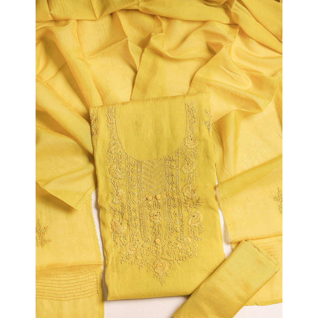 MUL CHANDERI EMBROIDERED SUIT SET