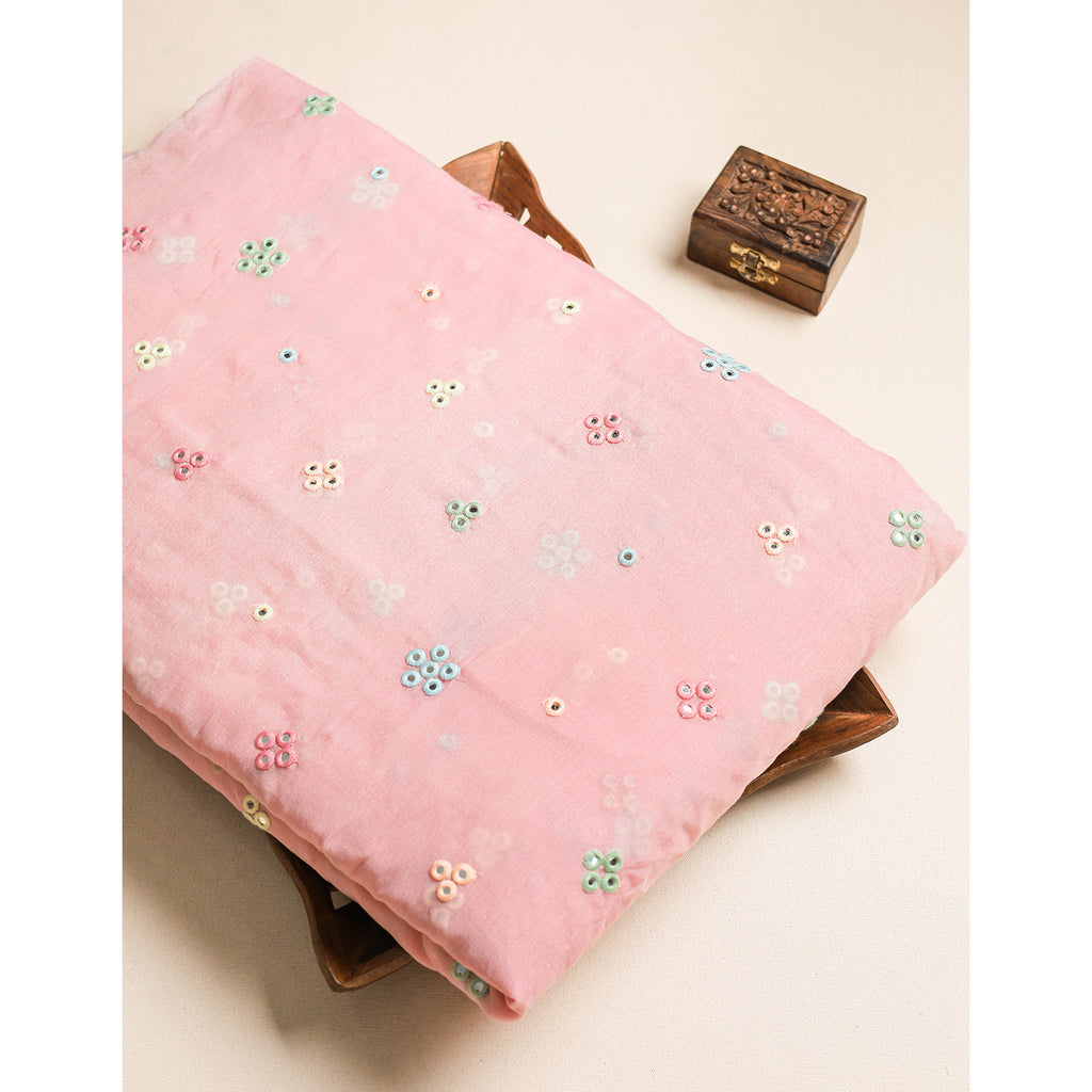 MUL CHANDERI MIRROR WORK FABRIC