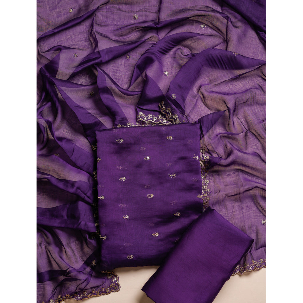 MUL CHANDERI SILK ZARI EMBROIDERED SUIT SET