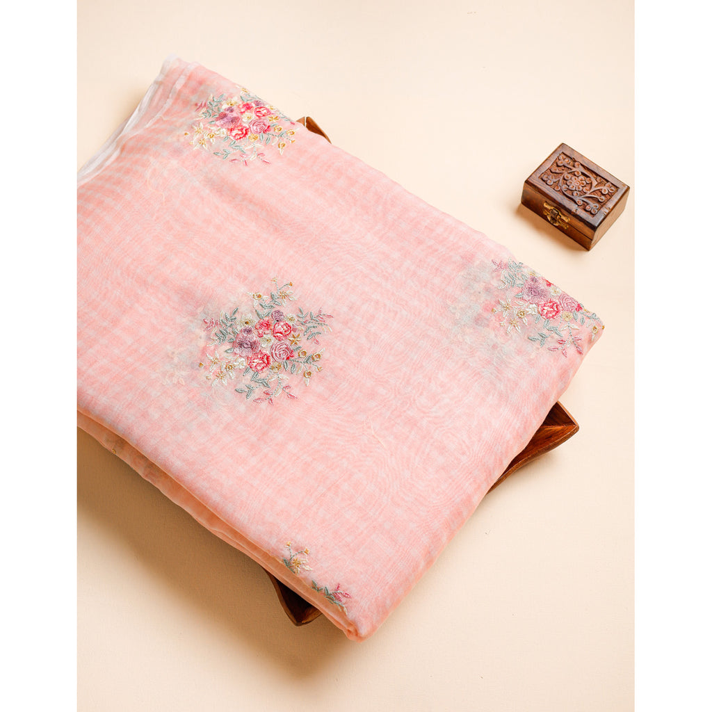 PREMIUM CHECKS MUL CHANDERI EMBROIDERED FABRIC