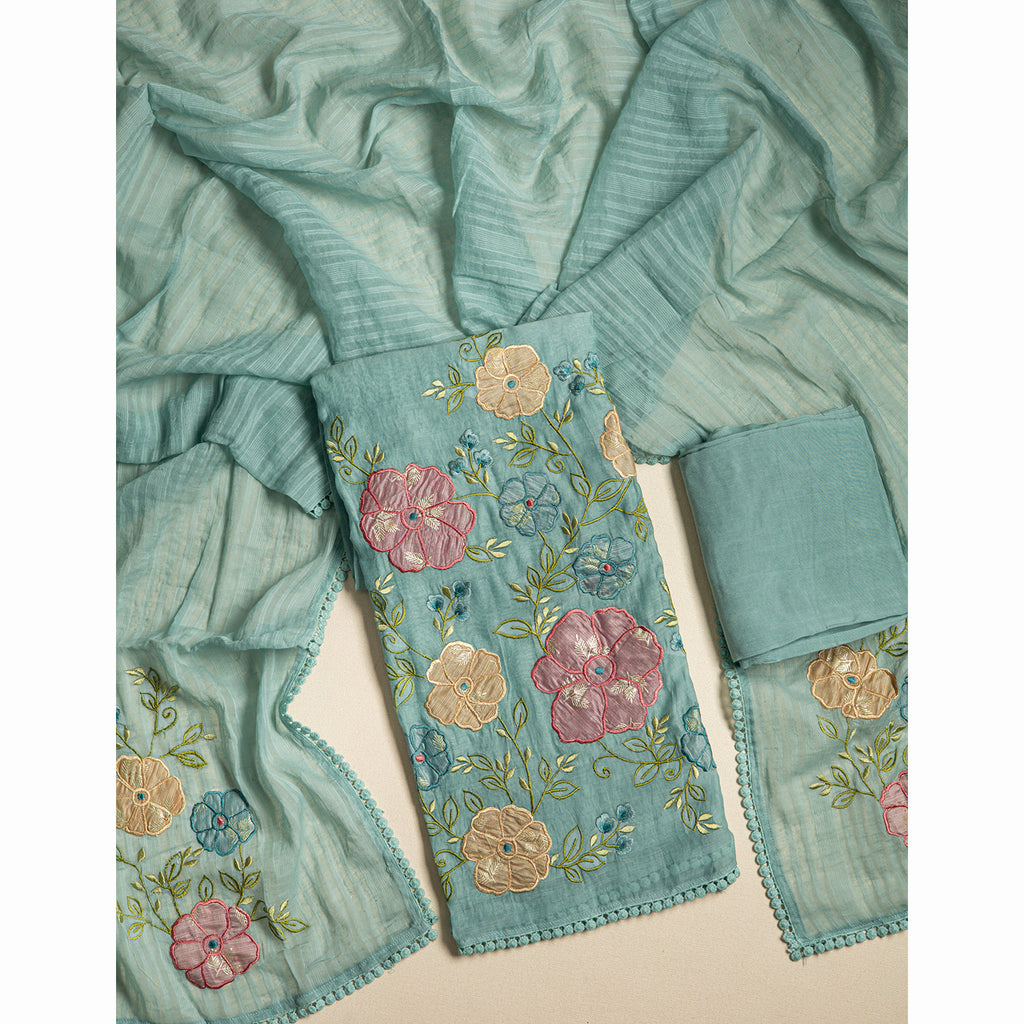 PURE MALAI CHANDERI EMBROIDERED SUIT SET