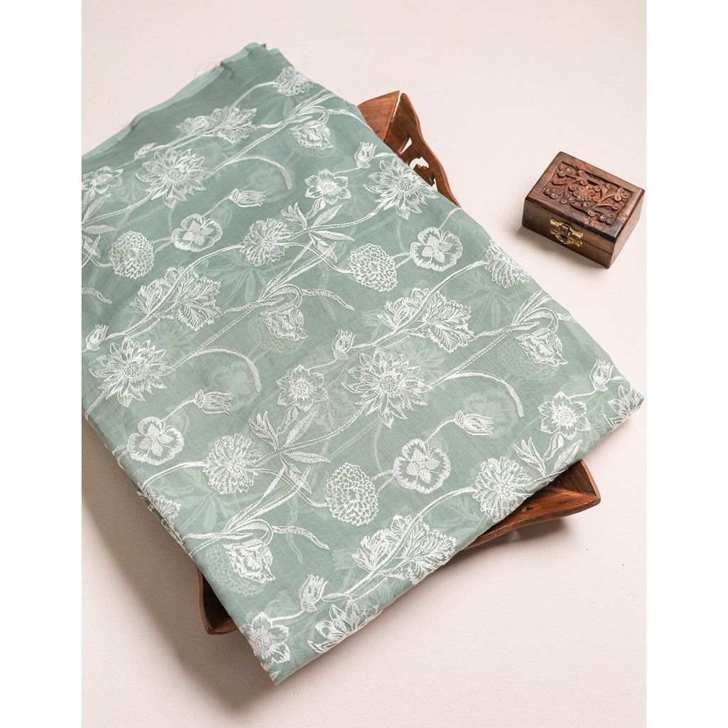 PURE MALAI CHANDERI EMBROIDERED FABRIC