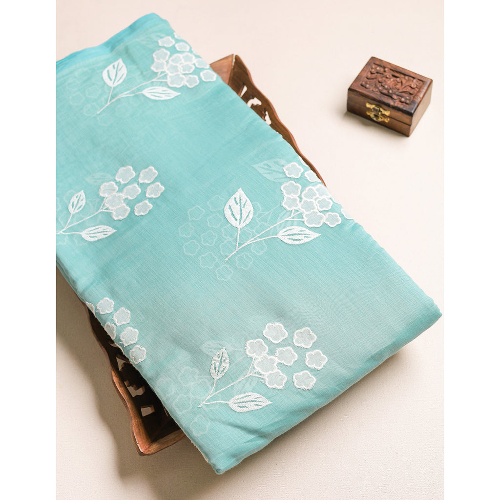 PURE MALAI CHANDERI EMBROIDERED FABRIC