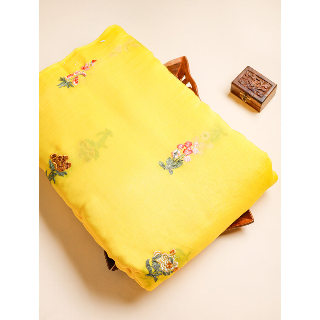 PURE MALAI CHANDERI SILK EMBROIDERED FABRIC