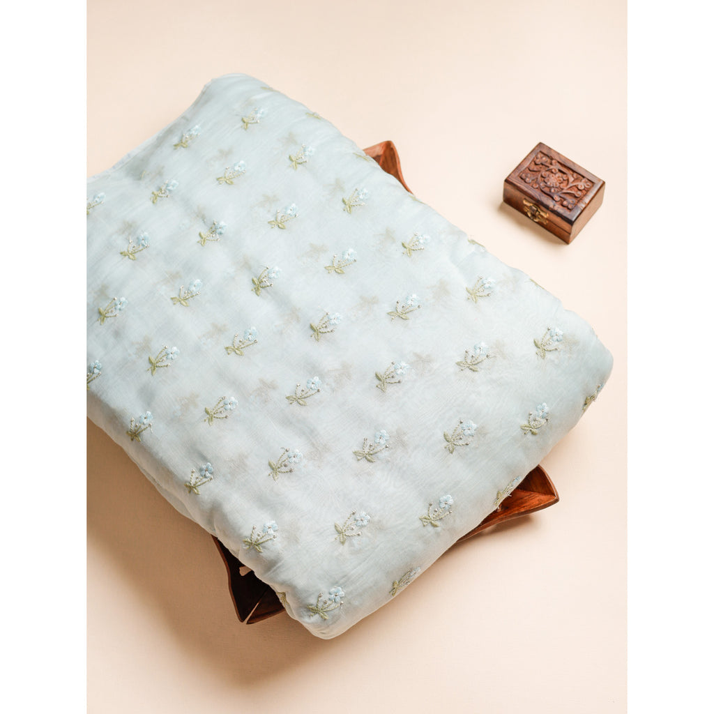 PURE MALAI CHANDERI SILK EMBROIDERED FABRIC