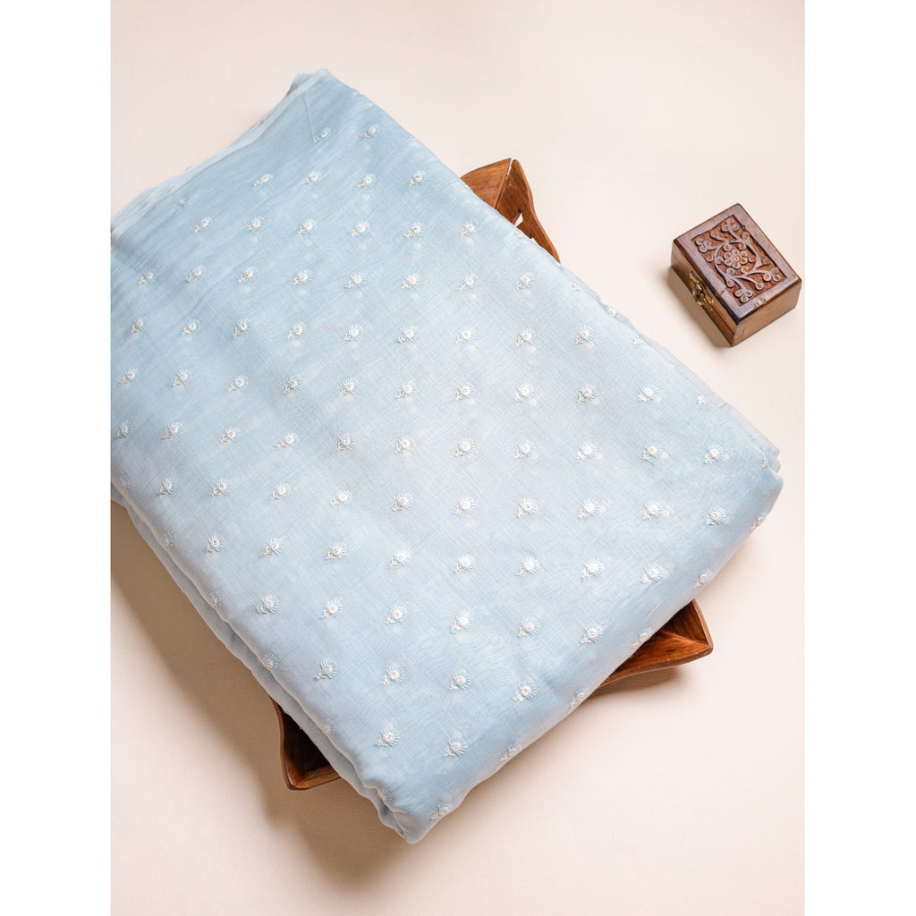 PURE MALAI CHANDERI SILK EMBROIDERED FABRIC